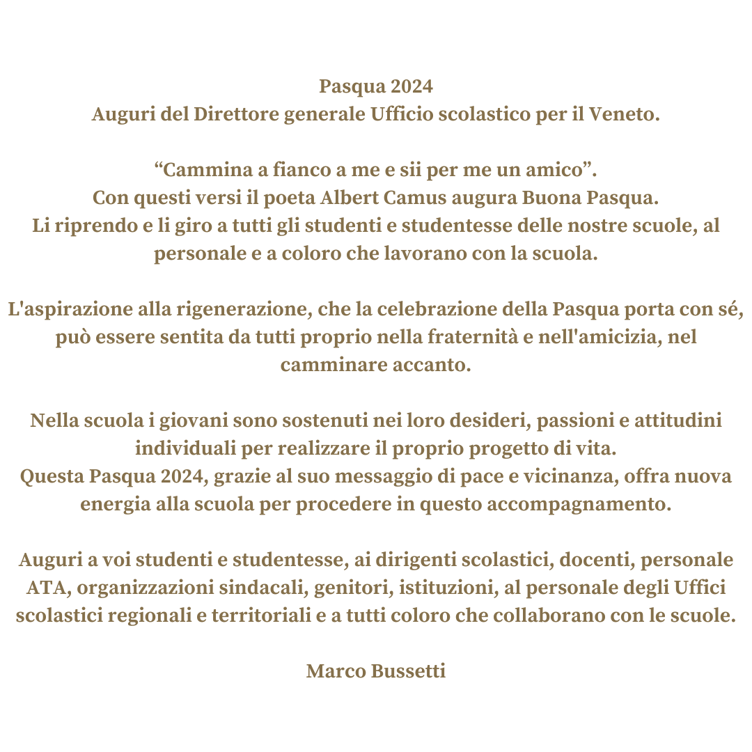 Auguri del Direttore generale Ufficio scolastico per il Veneto.