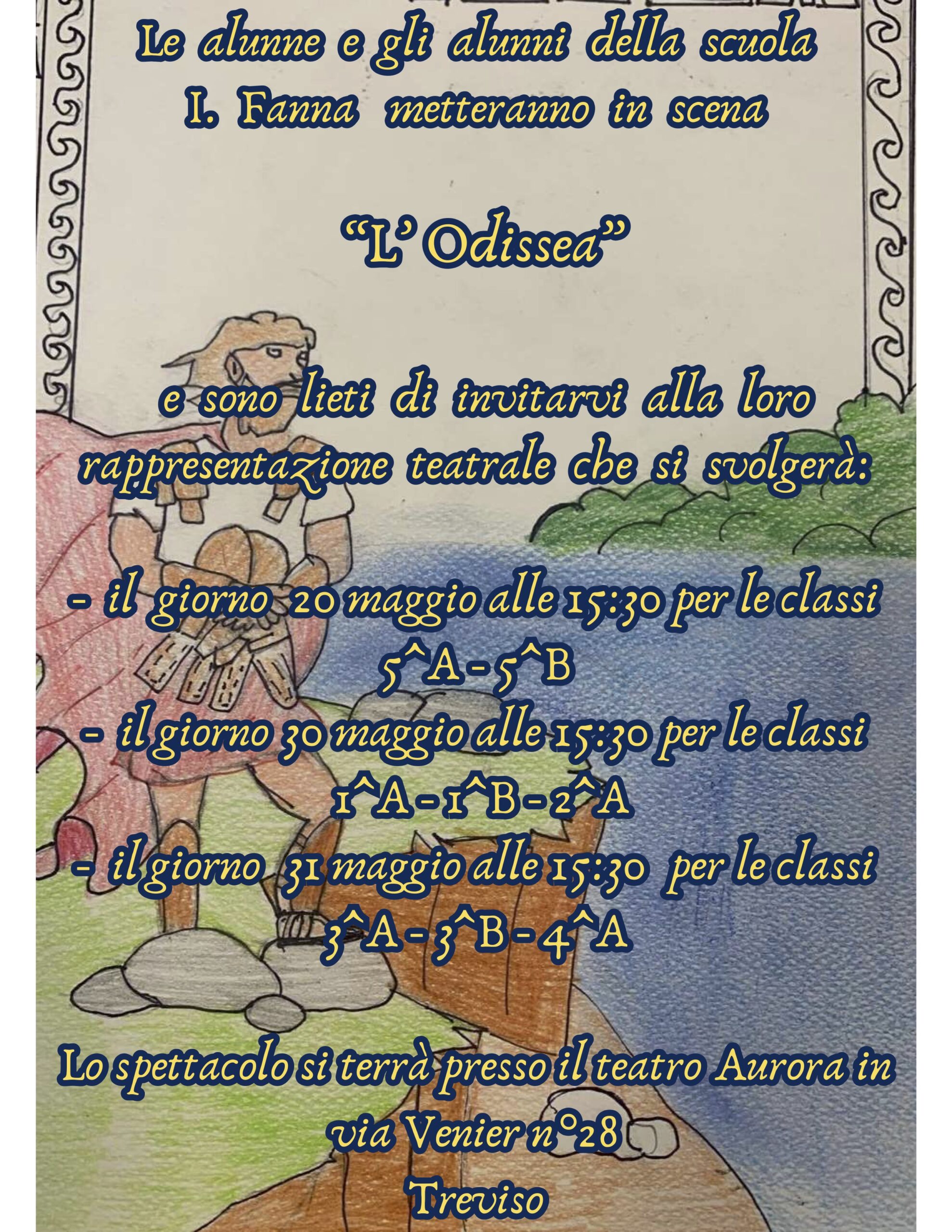 Gli alunni e le alunne della scuola primaria “I. Fanna” metteranno in scena l’Odissea presso il teatro Aurora (via Vernier 28 a Treviso)