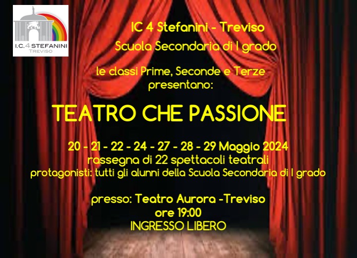 Rassegna teatrale delle classi prime, seconde e terze della scuola secondaria Stefanini. 20,21,22,24,27,28 e 29 maggio 2024 ore 19.00 Teatro Aurora